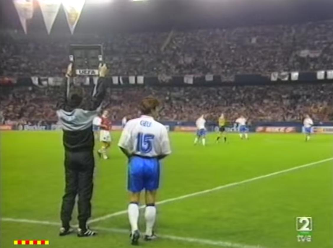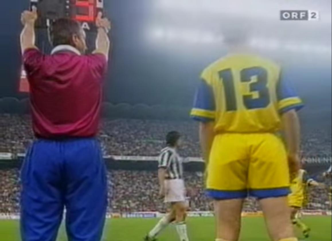 Il tempo non è proprio clemente, vento e pioggia la fanno da padrone. Al momento delle sostituzioni le tavolette di cartone con i numeri di maglia si piegano, diventando illeggibili. In quel momento, un colpo di genio.
