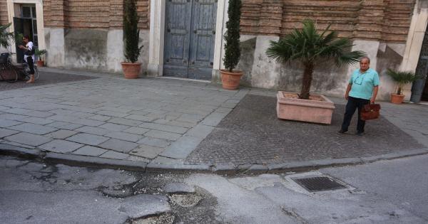 Le condizioni della piazza che collega il Corso del popolo a via Badaloni sono evidenziate dalla sequenza di buche e crateri che costellano la strada che passa a lato del sagrato del Duomo di Rovigo. Buche che sono anche sulle strisce pedonali, ovviamente non perfettamente bianche come in alti punti della città. E poi sconnessioni e crepe sull’asfalto. Marciapiedi qua e là sbriciolati e lo stesso sagrato usurato in più punti.