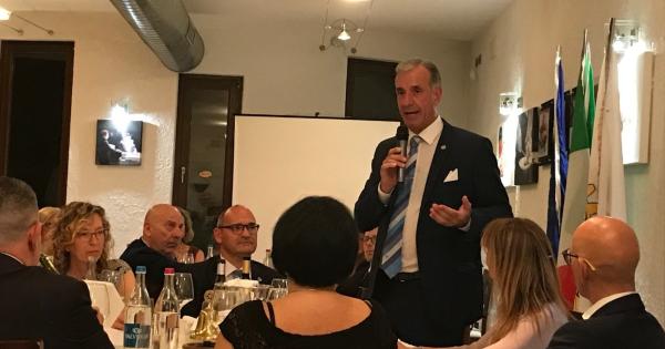 Prima della consueta conviviale, il governatore si è incontrato con il direttivo del club alla presenza del nuovo presidente, Maria Chiara Paparella, anch'essa entrata in carica, come il governatore, il primo luglio, dopo di che tutti si sono spostati al ristorante Zafferano di Porto Viro, dove ad attenderli, numerosi, c’erano i soci, accompagnati dalle consorti e da amici.