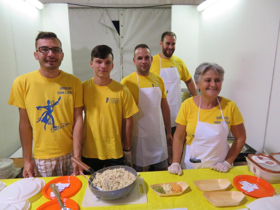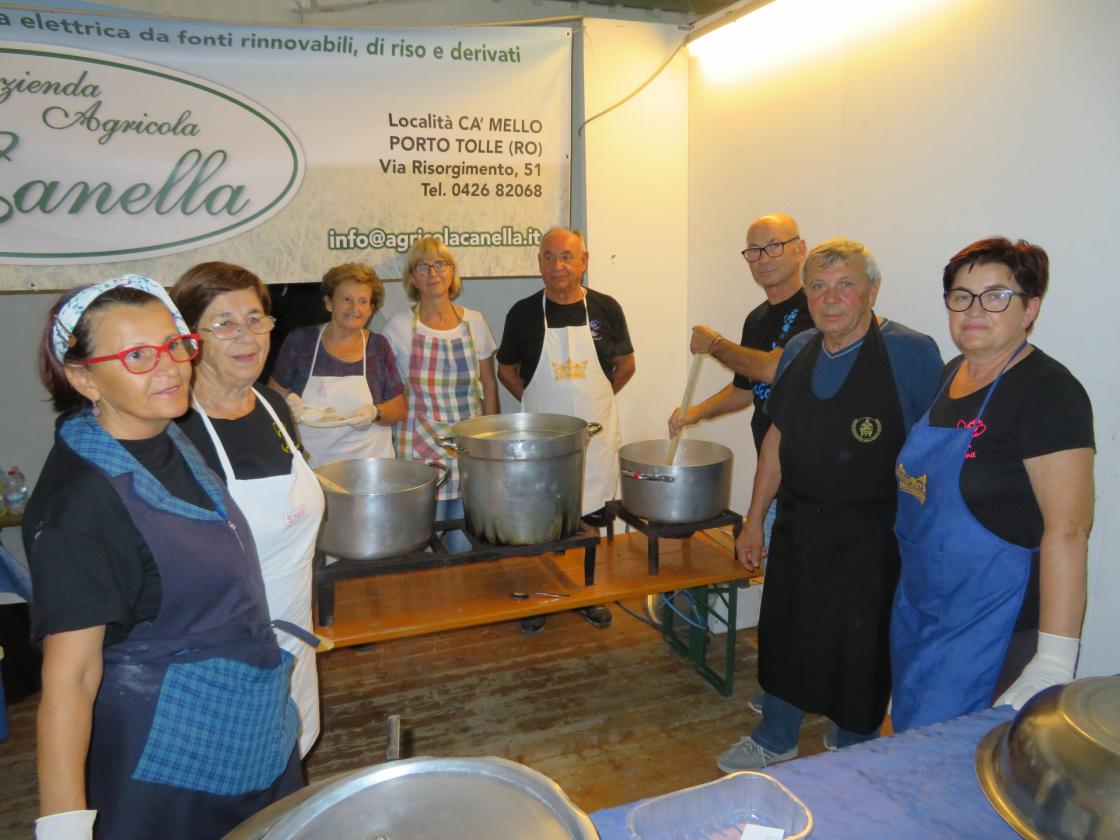 Il numero ricevuto alla cassa consente di far un tris, piatti abbondanti tra l’altro, ma il cuore piange quando si tira dritto davanti agli altri. Così i più, coppie, famiglie e gruppi, prendono menù diversi e così tra i tavoli e tutto un assaggiare nel piatto dell’altro. La maggior parte decide di tornare la sera dopo. E questa sera è l’ultimo appuntamento nello stand gastronomico dove, insieme a risotti, si possono degustare alcune specialità dolciarie tipiche: dalla tenerina alla crostata, passando per il dolce salame e i sug’li d’uva. Per quanti soffrono di intolleranze alimentari ci sono anche i menù senza glutine. Oltre alla bontà gastronomica c’è la simpatia di quanti sono impegnati nei diversi stand/cucina: i volontari dei comitati fieri di Santa Giulia, Donzella, Ca’ Venier, Polesine Camerini, le associazioni i Calabroni e gli Amici del tartufo polesano, ai quali si aggiungono i ristoratori di Villa Martina, Rugiada, Arcadia, Yoghi, Fritulin e Occaro. Il tutto sotto il coordinamento della Pro loco guidata da Sandrino Peggi.