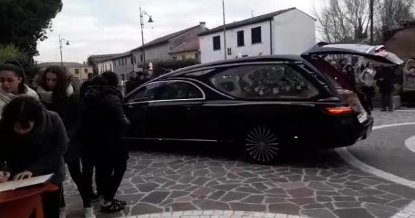 La maglietta, firmata da tutti gli amici, è stata appoggiata sulla bara del 19enne a simboleggiare un ultimo forte abbraccio. Infine, tanti palloncini bianchi lanciati in cielo e la schiera di motorini che sono stati accesi per salutare Mattia.
