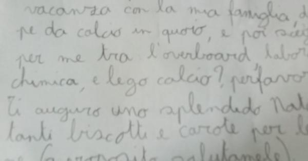 Lo apre e trova è una cosa molto tenera e carina, due letterine indirizzate a Babbo Natale con richieste ed adesivi natalizi.