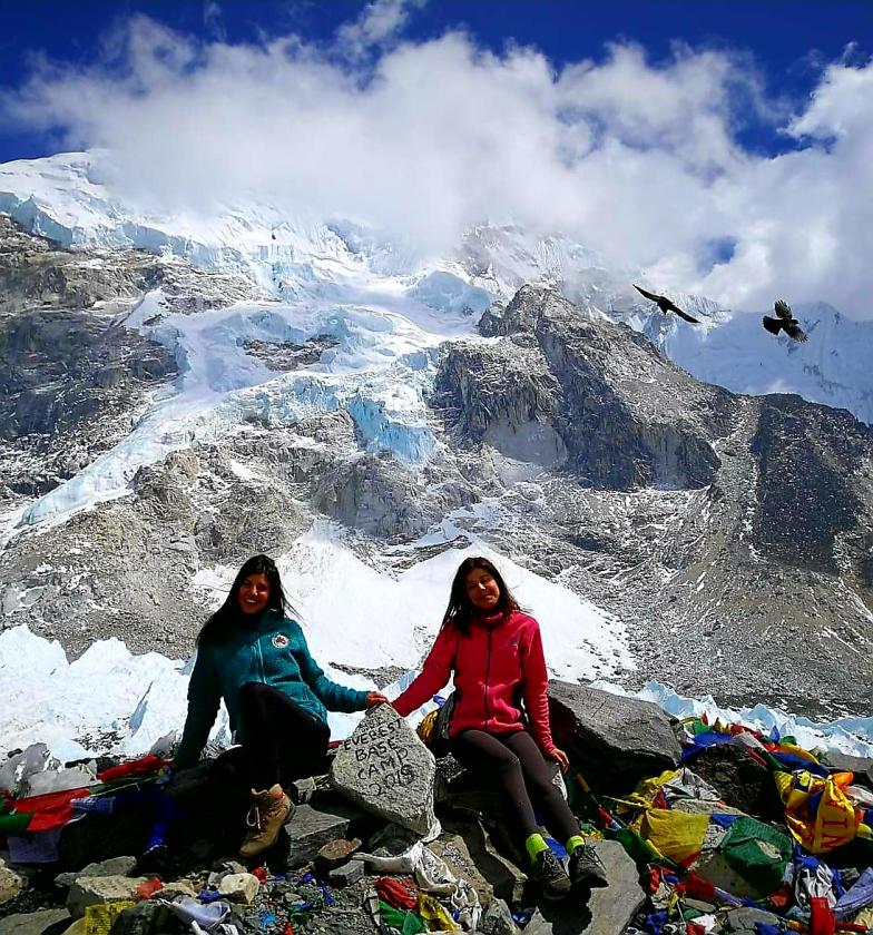 Ed è stato a quel punto che la fatica e il sudore speso nelle settimane precedenti è stato ripagato: “Arrivate al campo base - dicono Elisa e Alice - l’emozione è stata unica, ci siamo commosse. Vedere quelle innumerevoli tende gialle pronte ad ospitare le spedizioni di climbers è stata un’esperienza fantastica e irripetibile. Per non parlare del paesaggio che ci ha lasciato a bocca aperta. Di fronte all’immensità di quei ghiacciai e di quelle cime ci siamo sentite davvero piccole”.