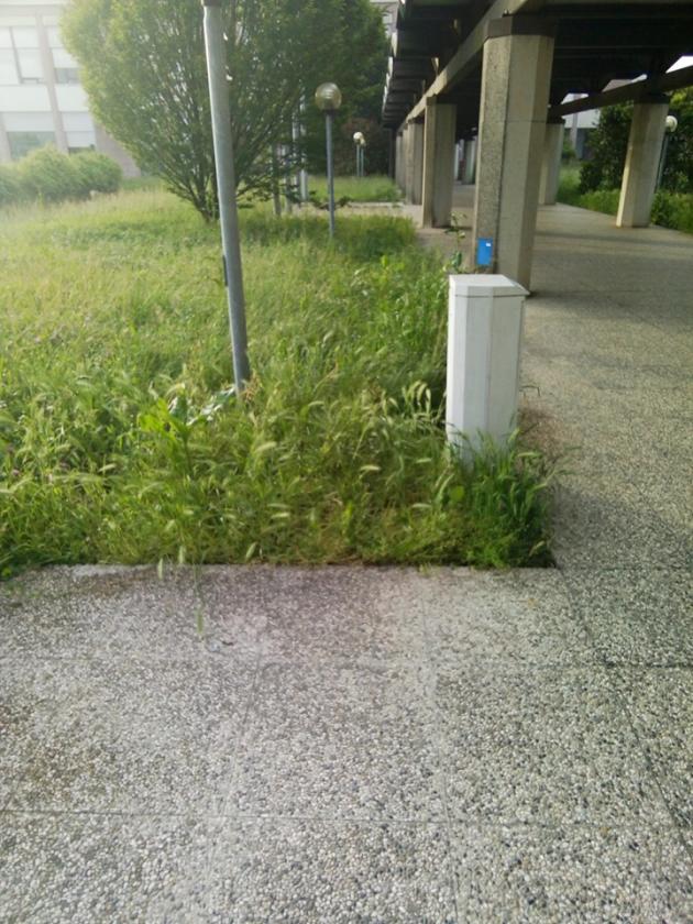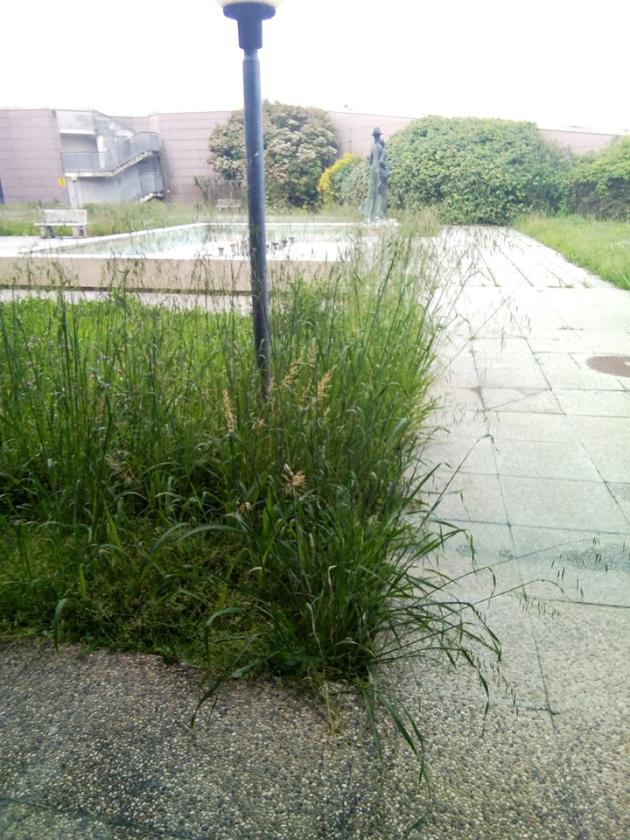 Ai lati del tunnel che porta all’ingresso del San Luca e il giardinetto che contorna la zona della fontana, dove teoricamente i pazienti e i parenti in visita dovrebbero potersi fermare in serenità per qualche istante, sono sommersi dall’erba e raggiungere le panchine è praticamente impossibile.