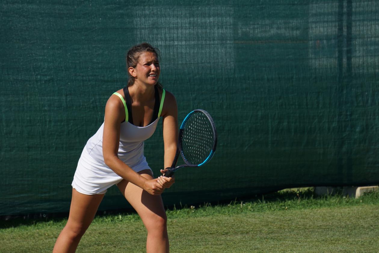 La prima partita dell’assolata domenica ha visto sfidarsi Matilde Monti e Roberta Faroni. Nel primo set si è imposta 6-3 Roberta Faroni, che ha saputo far valere la maggiore esperienza sul manto erboso. Il secondo set, molto più combattuto, si è però interrotto sul 4-4 a causa di un infortunio di Roberta Faroni, a cui tutto lo staff augura una pronta guarigione. L’atleta è stata costretta al ritiro, consegnando così la vittoria a tavolino a Matilde Monti. Quest’ultima sfiderà Camilla Rossi, anche lei reduce da una vittoria a tavolino a seguito del forfait di Giulia Peres, nell’ultimo turno del tabellone di terza.