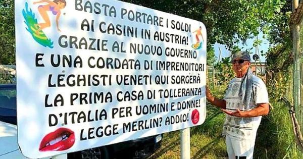 E poi assicura: “Presto l’assurda legge Merlin, che ha portato nel tempo degrado, criminalità e prostituzione in tutte le vie delle città italiane, cadrà! Quindi basta portare centinaia di miliardi nelle case di tolleranza in Austria e Svizzera”.