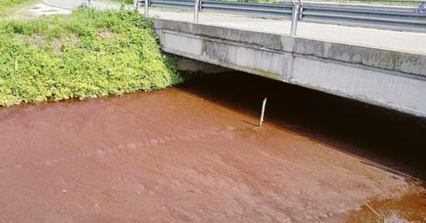 L’acqua dello scolo Campagna Vecchia Superiore, che divide il territorio comunale di Costa di Rovigo da quello di Arquà Polesine, è diventata completamente rossa, destando preoccupazione non solo tra i residenti.