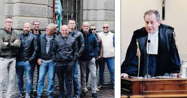 Alcuni rappresentanti dei pescatori e a destra l'avvocato Giampietro Berti