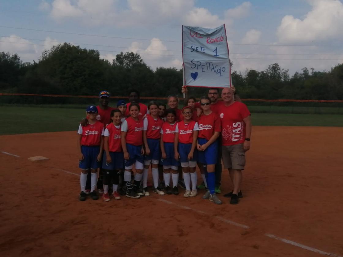 Sono queste le azioni da ricordare nella semifinale giocata dalle rodigine, ma in verità fanno ancora battere il cuore l’eco del tifo dei tanti genitori a bordo campo, gli striscioni, l’inno italiano cantato dopo le premiazioni finali da tutte le 12 squadre protagoniste sui diamanti di Bollate (sugli altri campi si giocava per lo scudetto Under 15 e Under 18).