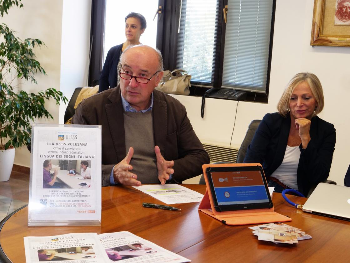 Integrazione ed accessibilità. Queste le parole d’ordine per un progetto innovativo all’avanguardia dedicato agli utenti sordi o sordo-muti a breve attivo nei tre ospedali dell’Ulss 5. Per i non udenti capaci di comunicare con la lingua dei segni italiana entrerà in funzione a brevissimo un vero e proprio servizio di video-interpretariato “Veasyt Live!”, disponibile nei tre ospedali sia per le entrate al pronto soccorso che per le visite ambulatoriali. Sia previo appuntamento concordato ma anche in modo immediato, tramite tablet o eventualmente computer e smartphone. Dalle 8 alle 18 sarà possibile avere a disposizione un interprete qualificato in grado di rendere la comunicazione più chiara ed approfondita possibile tra il medico o altro operatore ospedaliero ed il paziente. Un servizio già presente in altre realtà sanitarie venete che sottolinea l’attenzione della Regione all’inclusione sociale delle persone sorde.