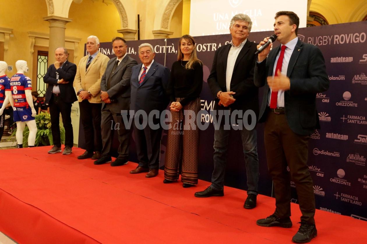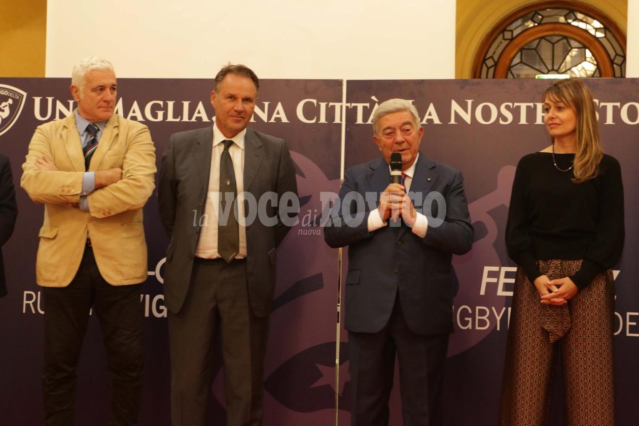 Il presidente Francesco Zambelli, dopo aver ringraziato tutti i presenti, ha detto, facendo trasparire un po’ di emozione: “Sono due le grandi occasioni per cui si deve festeggiare il nostro amato rugby: la fine del campionato, se è stato vinto, e l’inizio della nuova stagione per incoraggiare i giocatori grandi e piccoli affinché ci facciano sognare e ci ripaghino della passione che riponiamo in loro. Umberto, il coach, mi ha assicurato di aver allestito una prima squadra in grado di avere la possibilità di vincere lo scudetto e io gli ho garantito il sostegno, anche a nome della società, dell’amministrazione comunale, della città e dei tifosi, che daremo per aiutarlo a raggiungere questo risultato: massimo obiettivo di vanto per il nostro territorio”.
