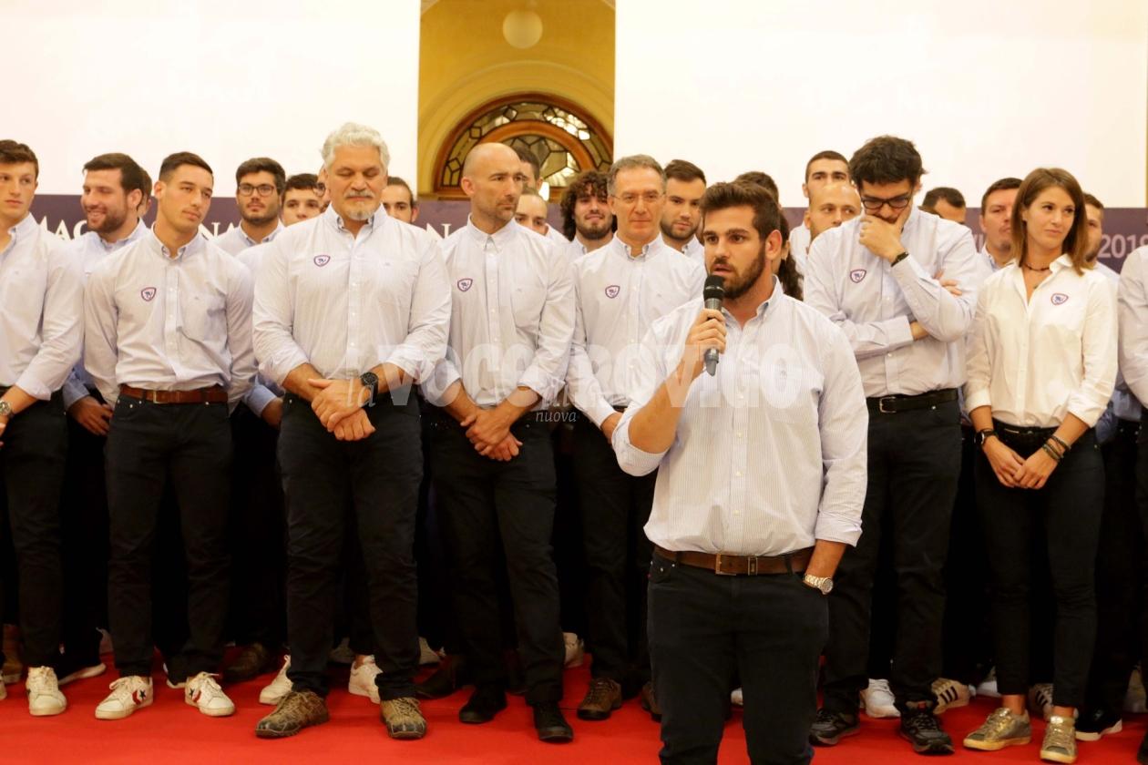 Il capitano della squadra Matteo Ferro, acclamato dal pubblico, ha detto: “L’anno prossimo dovrà pensare ad un posto più grande presidente, siamo sempre più numerosi! Scherzi a parte, ringrazio tutti, inizia il campionato e non vediamo l’ora di giocare la prima partita in casa, do il benvenuto ai nuovi ragazzi, il bentornato agli altri, buon divertimento e buona stagione a tutti”.