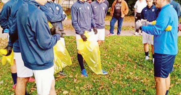 Durante l’insolito preriscaldamento, i ragazzi della prima squadra hanno ripulito il parco Munari e i giardini pubblici di via Foro Boario.