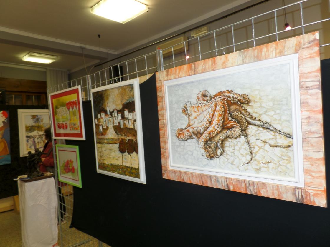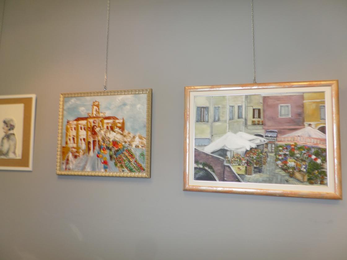 Alla mostra partecipano 25 artisti e sono esposte 40 opere. “Gli artisti, in almeno un quadro, hanno riprodotto la fiera - ha detto Arborini - significative sono le opere arrivate da altre province e regioni d’Italia. Sono presenti opere d’arte di artisti di fama internazionale, i quadri sono esposti sia qui nella nostra sede, sia all’ingresso del palazzo del municipio. Purtroppo a causa del tempo non è stato possibile decorare la gradinata del Comune”. Tra i quadri esposti quelli di Vico Calabrò, 80 anni, un maestro freschista, ultimo del genere in Italia. “Ho l’onore di essere una sua allieva - ha affermato Dumas - l’affresco è una tecnica antichissima e siamo l’unica nazione al mondo che lo usa. Calabrò ha portato tre quadri, due sono esposti, il terzo sarà in esposizione nella mostra che sarà dal 16 al 22 novembre”.