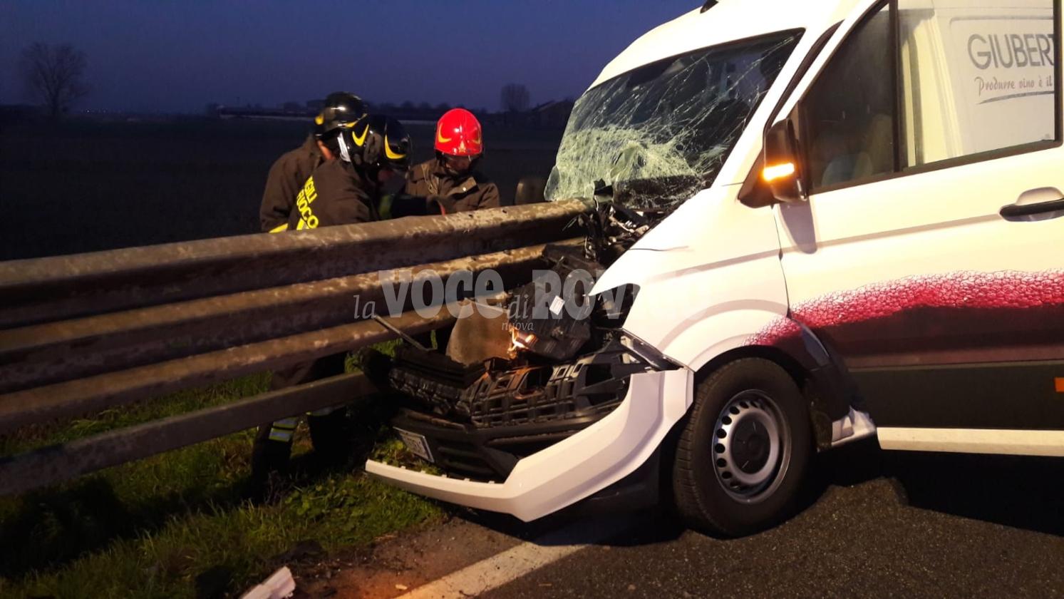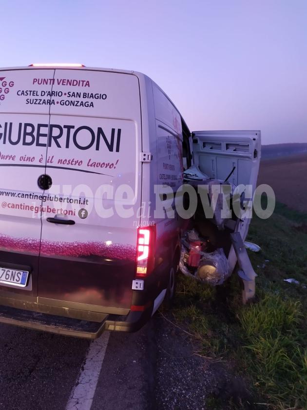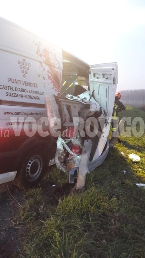 L’incidente è successo sulla strada Eridania, all’altezza di Castelnovo Bariano. L’uomo stava trasportando fusti vuoti di vino, con un furgoncino della cantine Giubertoni di Bagnolo San Vito (Mantova). Per ragioni al vaglio degli inquirenti, il mezzo è andato fuori controllo ed è finito fuoristrada. Il guardrail è finito proprio dentro l’abitacolo, a qualche centimetro di distanza dal conducente del veicolo. Altrimenti sarebbe stata una tragedia.