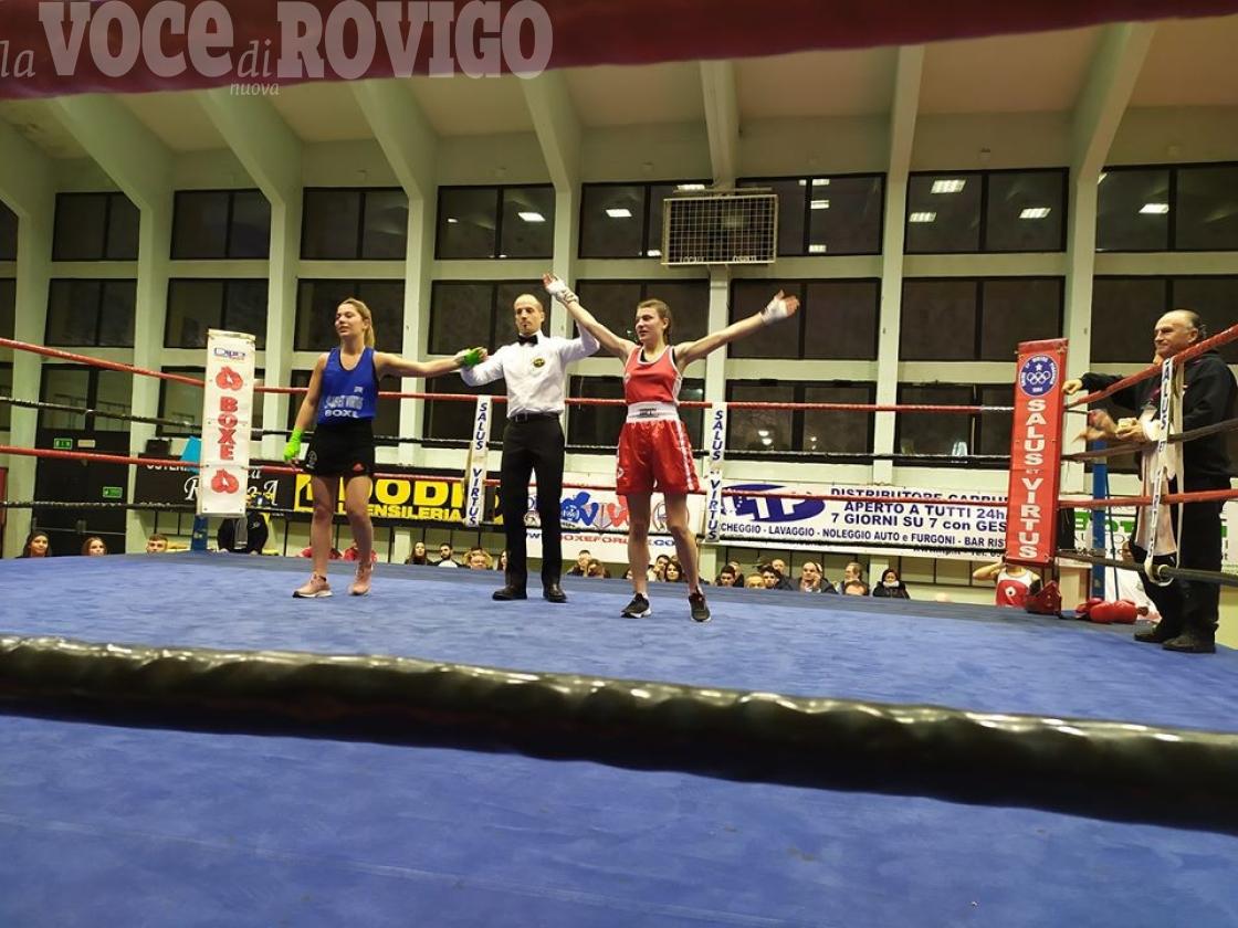 Una menzione speciale, aggiungendola a questo lungo elenco di campioni, la si deve un pugile donna della Rhodigium Boxe: la giovane Marianna Mantovani che in pochi mesi ha combattuto in due match, vincendoli entrambi.