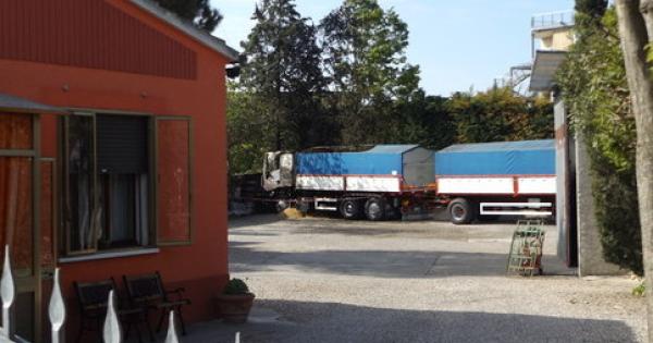 Il tir dato alle fiamme all'interno della ditta di autotrasporti