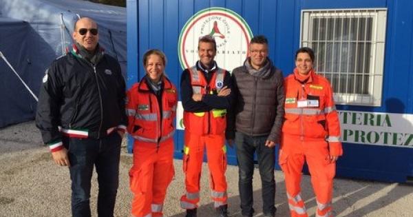 Massimo Barbujani con Lamberto Cavallari in visita ai paesi terremotati