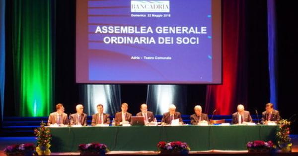 Un momento dell'assemblea dei soci di Bancadria nel teatro comunale di Adria