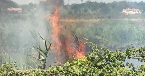 Fiamme lungo l'argine del Canalbianco ad Adria