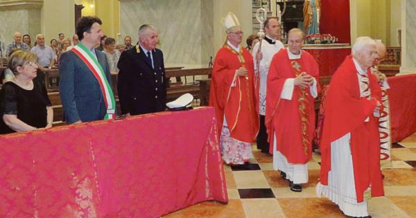 Alla cerimonia era presente anche il sindaco Omar Barbierato con il gonfalone della città. Già scossi dalle parole del vescovo, autorità e fedeli hanno trovato un’altra sorpresa: per la prima volta la processione all’esterno della chiesa si è svolta senza la statua di San Pietro, solo con la reliquia della mano portata dal vescovo.