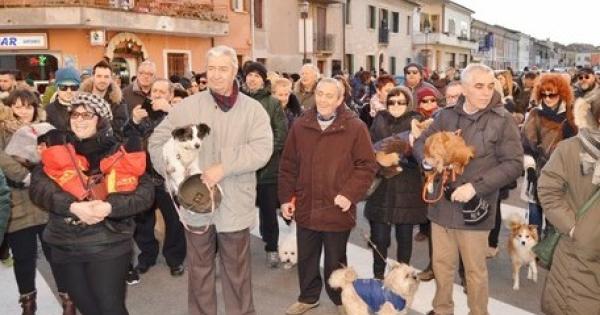 Alcuni cagnolini coi loro padroni prima della benedizione