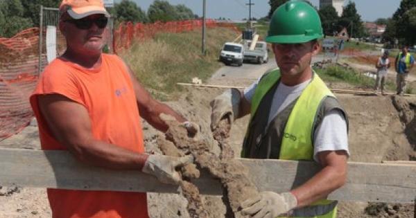 Operai al lavoro nel cantiere all'altezza del ponte sull'Adige