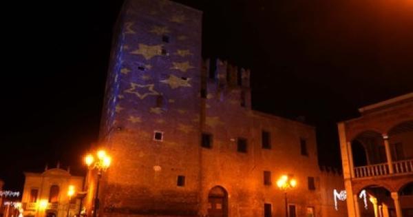 Il viaggio tra le luminarie del Polesine. A Lendinara le stelle proiettate su Palazzo Pretorio, a Lusia bello l’albero nella piazza del Comune.