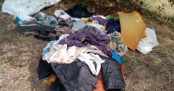 Una foto del giaciglio di indumenti e di un cuscino senza fodera segnalati