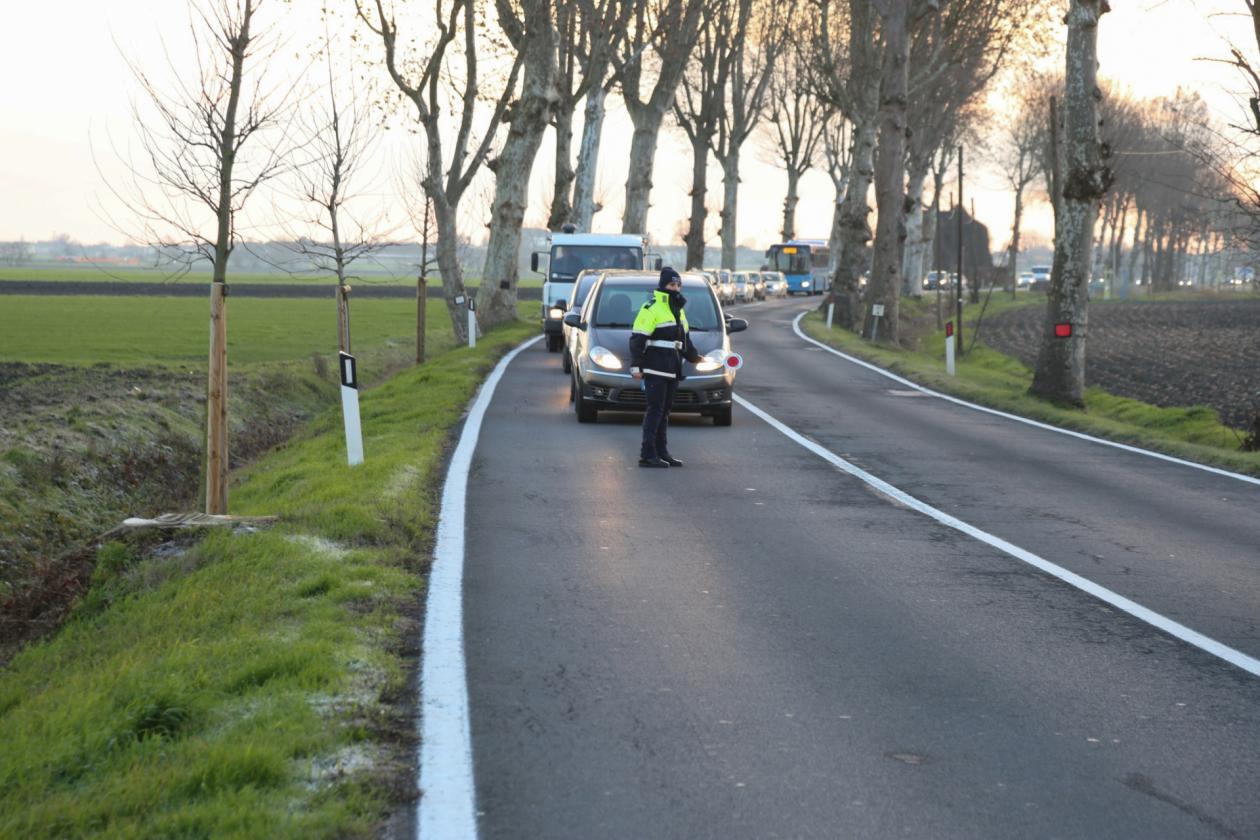 Il tutto è avvenuto pochi minuti prima delle 8. Le ripercussioni sul traffico sono state pesantissime. Si sono formate code in ambo i sensi; se, infatti, nella prima fase dei soccorsi, è stato possibile fare proseguire il traffico a senso unico alternato, quando è stato necessario recuperare l'auto del fuggitivo non è stato possibile evitare la chiusura completa della regionale. Le file hanno ben presto raggiunto una lunghezza superiore al chilometro. Determinante il lavoro della polizia locale di Villadose, mentre i carabinieri si sono occupati di eseguire i rilievi per ricostruire la dinamica.