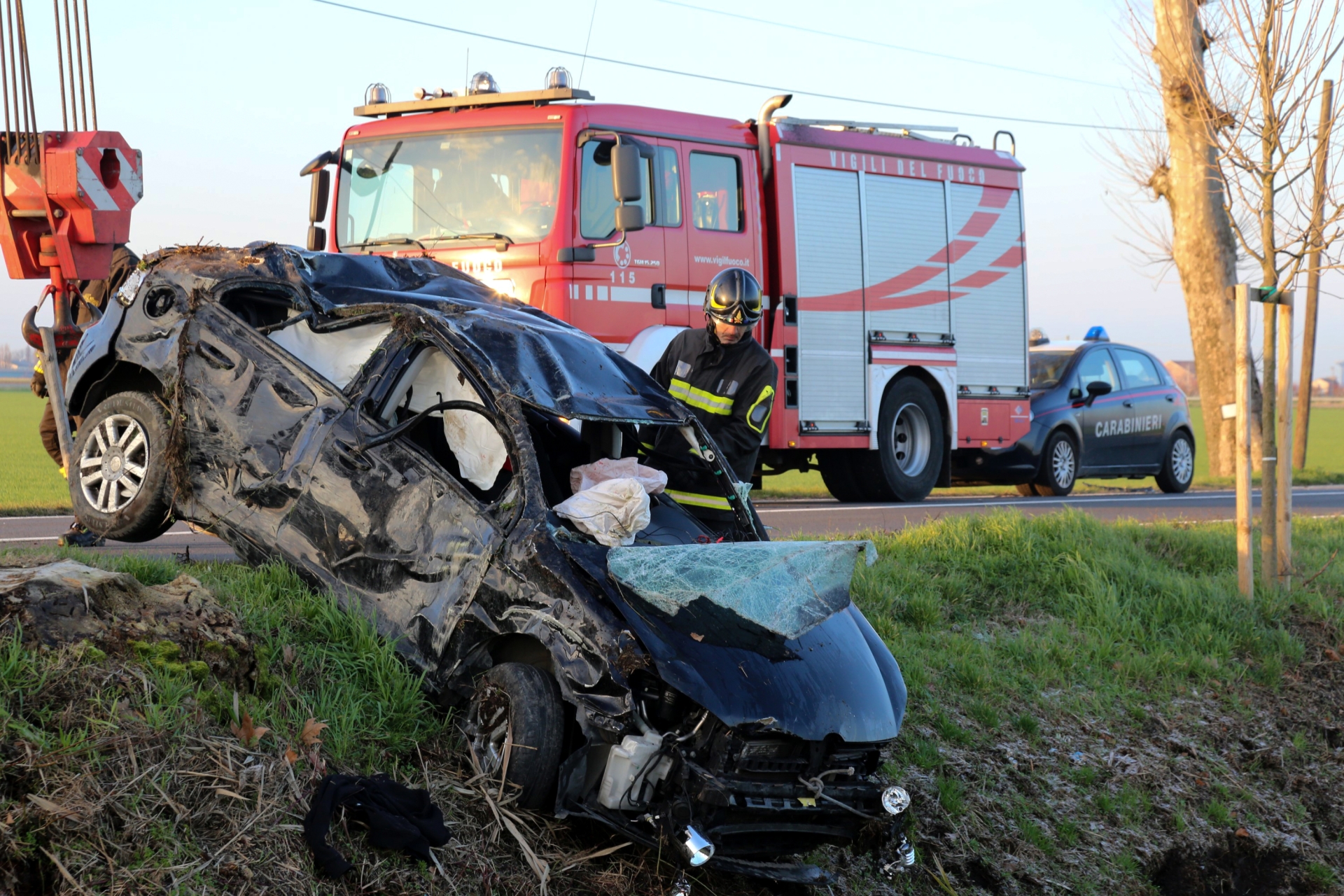 Il grosso del lavoro, come spesso accade, è stato svolto dai vigili del fuoco, che prima hanno messo in sicurezza le due auto coinvolte, quindi si sono occupati del recupero di quella finita nel fossato, sotto la profonda scarpata che costeggia la strada: il soccorso stradale non sarebbe riuscito a recuperarla. E' stato quindi necessario azionare l'autogru, che ha riportato la vettura sulla sede stradale, dopo averla sollevata.