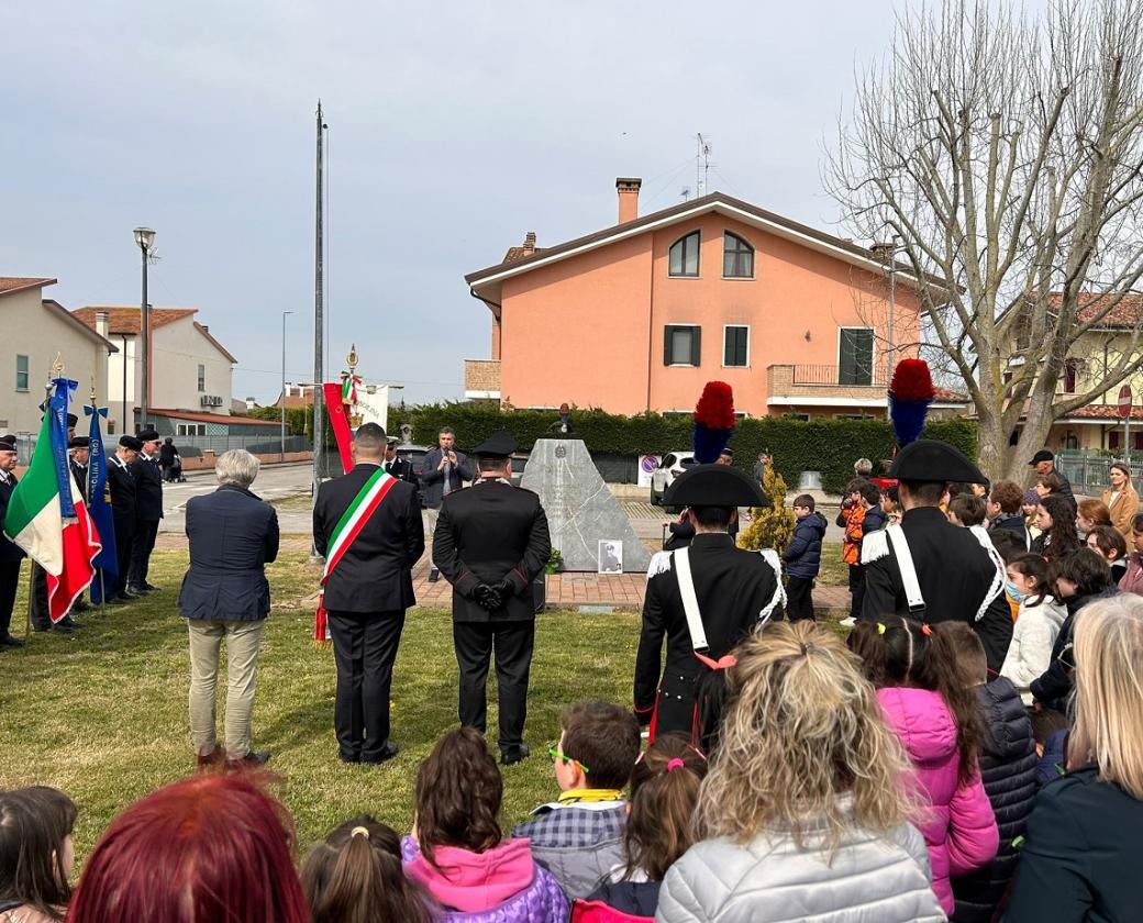 La commemorazione è successivamente proseguita con la deposizione di una corona presso il monumento dei caduti in “Piazza Carabiniere Antonio Ferro” in località Volto di Rosolina, a cui hanno partecipato anche le classi 4^ e 5^ della locale Scuola Elementare “Aldo Moro”.