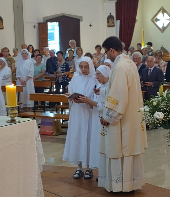 Il più giovane sacerdote della diocesi, don Nicolò Grandesso, ordinato una ventina di giorni fa, ha presieduto la celebrazione liturgica per il giubileo di suor Lavinia e suor Marilena nella ricorrenza dei 50 anni della loro professione religiosa. E sabato pomeriggio le due carmelitane hanno rinnovato i loro voti davanti all’altare alla presenza di suor Carmela madre generale dell’ordine di Santa Teresa di Torino, insieme a una decina di altre consorelle e di tutta la comunità adriese rappresentata dai tanti fedeli che hanno gremito la chiesa di San Vigilio. Hanno concelebrato l’arciprete della Cattedrale mons. Matteo De Mori, don Bryan, don Paolo, don Mattia, il diacono Simone e don Fabio.