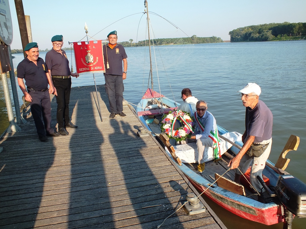 Dopo la celebrazione della santa messa da parte di don Nicolò Grandesso, assistito da don Matteo de Mori, e il saluto del sindaco, Pierluigi Mosca accompagnato dall’assessore Chiara Mancin e da Aldina Canato, i partecipanti, preceduti dal labaro dell’Associazione Lagunari di Adria, si sono recati sul pontile dove, impartita la benedizione al fiume, il sindaco e don Nicolò son saliti sull’imbarcazione di Bruno Fusetti, figlio del mitico passatore Pipìo, e giunti al centro del fiume dove inizia il Delta nel punto in cui si dirama il Po di Goro, hanno affidato alle acque un serto votivo in segno di propiziazione.