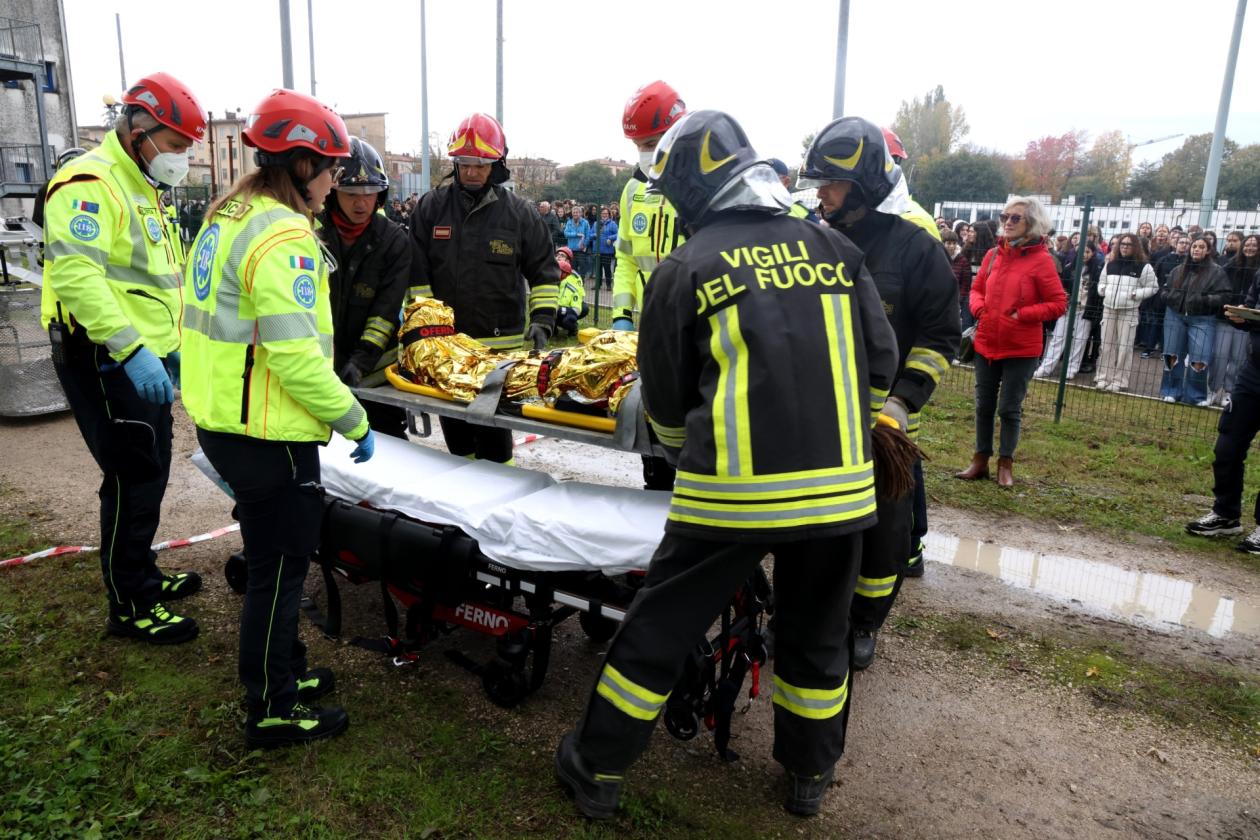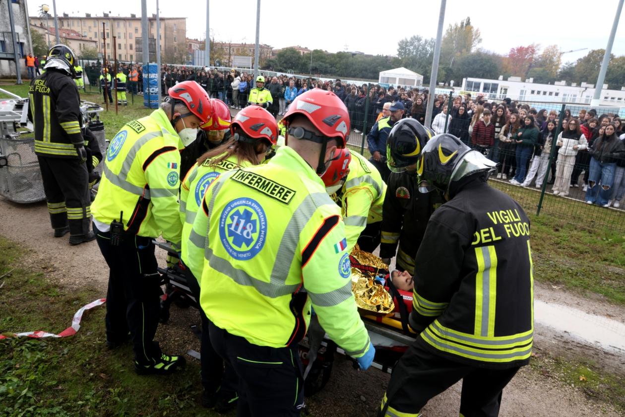 Una simulazione accuratissima, perfettamente impostata e ancor meglio riuscita, quella andata in scena nella mattinata di venerdì 10 novembre a Rovigo, al liceo classico. Coinvolti, oltre alla Protezione civile, che ha retto la regia dell'esercitazione, i vigili del fuoco, con il loro bagaglio di professionalità e competenza, irrinunciabile in queste circostanze, il personale del Suem 118 dell'Ulss 5 Polesana e la Polizia locale.