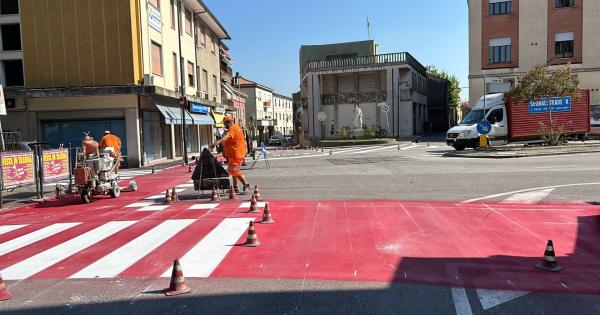 Piste ciclabili disegnati sui parcheggi: va sempre peggio. Continuano i lavori di segnaletica stradale in centro nella zona fra via don Minzoni, via Corridoni e piazzale della Libertà. La pista rossa - eredità dell'amministrazione Gaffeo, che ha studiato i percorsi e ottenuti i finanziamenti - continua a fare discutere sulla strada che collega il centro a san Bortolo.