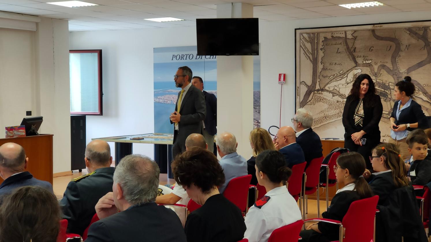 "Il porto ha un ruolo fondamentale nella vita di questa città e dei suoi abitanti, perché connette il territorio di Chioggia al mondo". Si è relazionato direttamente con i ragazzi delle classi elementari presenti in sala il Presidente dell'AdSPMAS Fulvio Lino Di Blasio, spiegando come questa relazione sia sempre più stretta anche grazie all'arrivo dei crocieristi, che alimentano un ulteriore e prezioso flusso di traffico in transito attraverso lo scalo clodiense oltre a quello delle merci. "La nostra è una realtà molto dinamica – ha aggiunto il presidente Di Blasio – dove sono insediate una molteplicità di aziende ed enti che impiegano migliaia di lavoratori e che sono sempre alla ricerca di giovani qualificati. E' proprio per illustrare ai ragazzi questo mondo, affascinante ma spesso poco conosciuto, che abbiamo aderito al progetto editoriale che ha consentito di realizzare il diario scolastico 'Tutti i colori del Veneto', inserendo nel testo molte informazioni utili e curiosità sul porto e sulla logistica proposte in modo efficace e divertente".