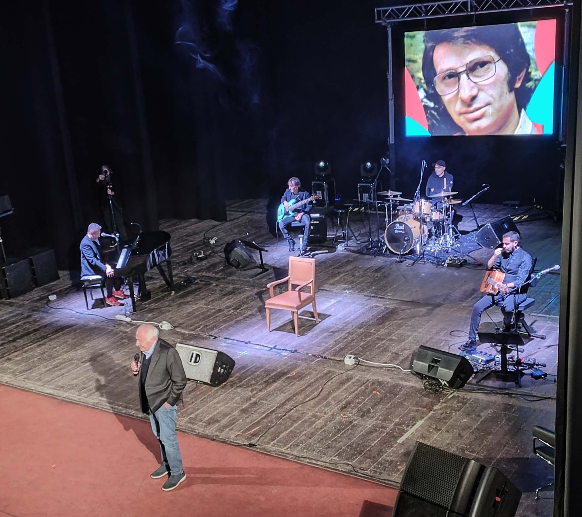 Toccando anche le corde della propria intimità, nel ricordare, per esempio, come è nata “Anche per te” dedicata alla moglie, 30 anni più giovane di lui pensando “che morirò prima di lei, così una notte, in pigiama, affacciatomi alla finestra, guardando il buio del cielo e mirando le stelle, ho pensato che continuerò ad amarla da lassù”. Ed è nato quel ritornello che ogni fa venire i brividi ogni volta che si riascolta: “Anche per te vorrei morire ed io morir non so/ anche per te darei qualcosa che non ho”.