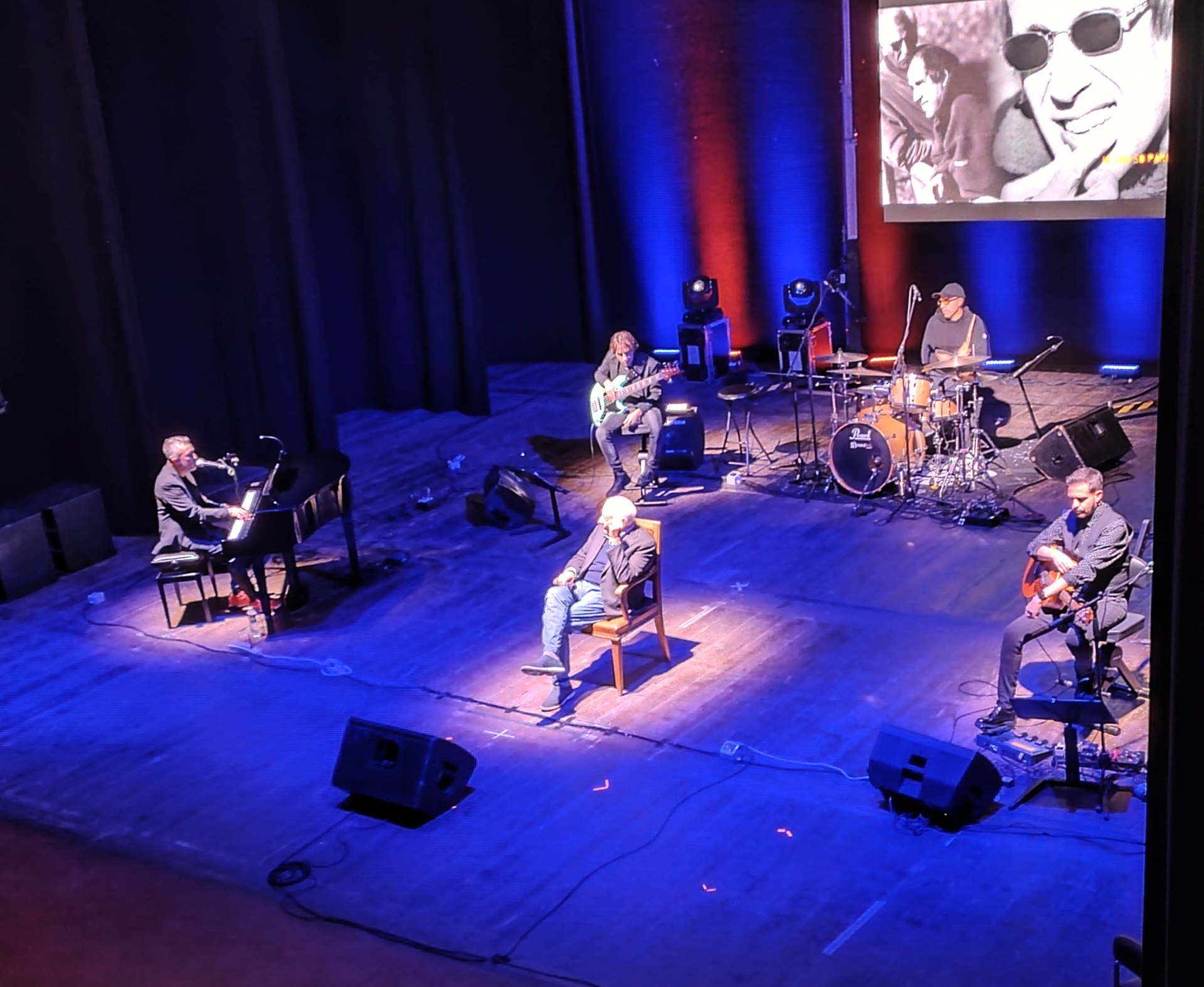 Protagonista assoluto lui, Giulio Rapetti, in arte Mogol, un “giovanotto” di 88 anni. Va e viene sul palco. Ogni tanto, comprensibilmente, si siede. Parla, racconta, canta, un po’ dirige e in tutto questo sa trasmettere una carica di giovanile entusiasmo e di amore per la vita che ben pochi sanno fare con la stessa sensibilità e credibilità. Non è un attore che recita la parte, è un uomo che recita se stesso.