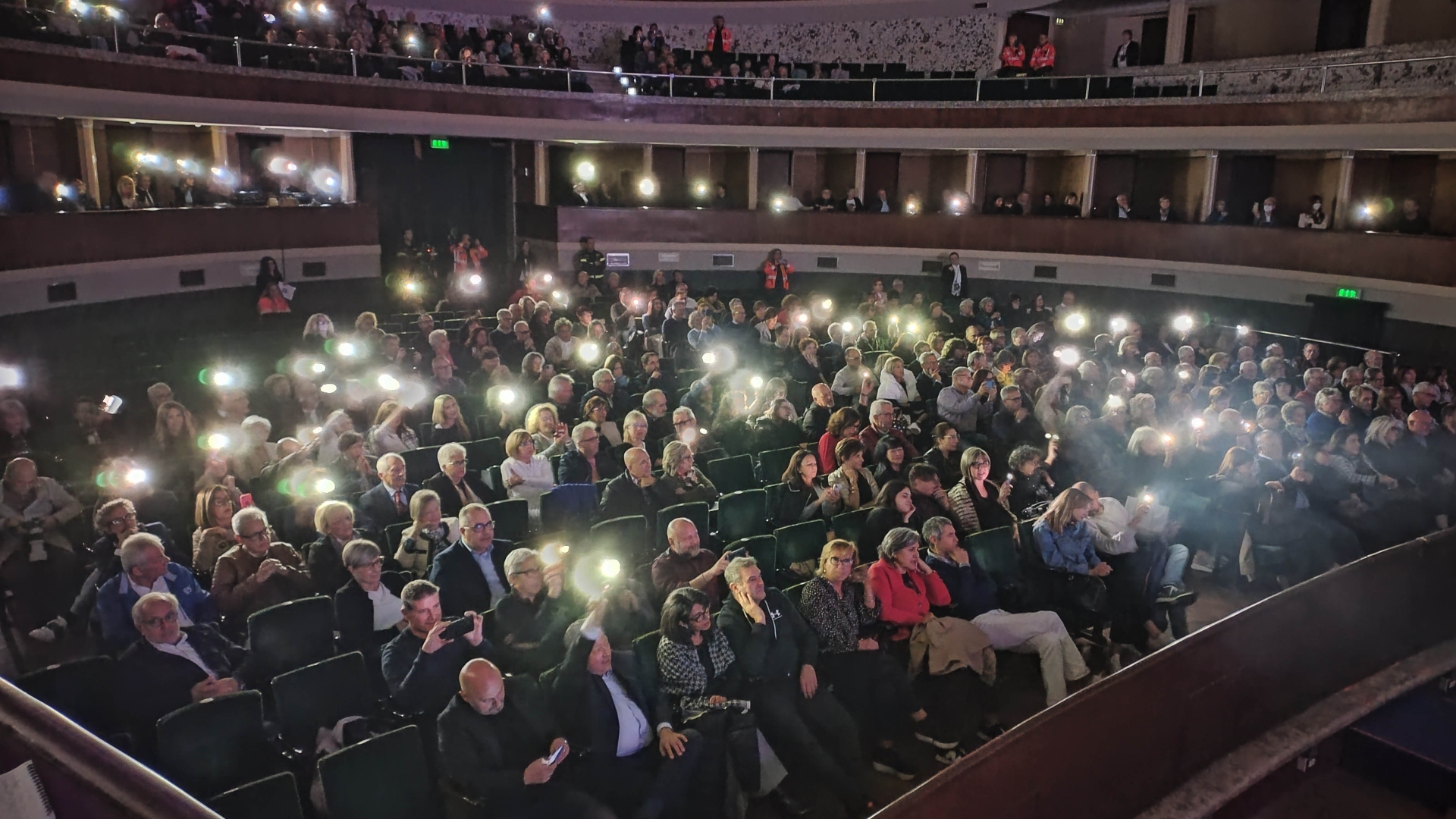 Sul palco Mogol sa ancora emozionarsi ed emozionare raccontando la propria storia, artistica e personale, raccontando come sono nate quelle canzoni che hanno toccato e continuano a toccare il cuore di intere generazioni. Canzoni con una carica emotiva, umana e spirituale destinate a essere senza tempo. Canzoni che hanno fatto riportare indietro le lancette del tempo di qualche decennio per gran parte del pubblico dell’altra sera. Spettatori che non sono andati a seguire un concerto, ma che sono entrati nel concerto dimostrando che quelle canzoni sono veramente entrate nei loro cuori e sono parte della loro vita. E così tutto il teatro a cantare, in alcuni momenti ad agitare le torce dei telefonini in un’atmosfera a dir poco suggestiva e standing ovation a ripetizione.