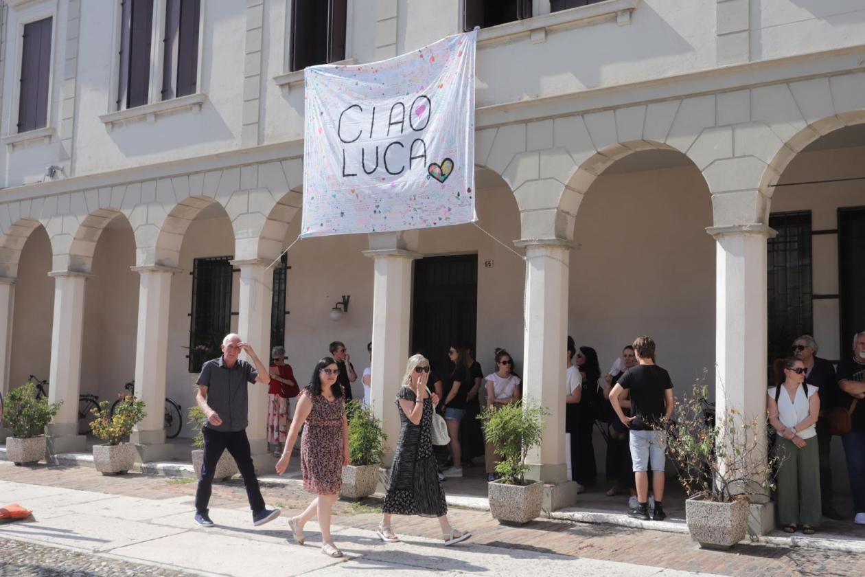 Sì, perché morire a 8 anni non è giusto, è disumano, non è accettabile. Il tempo a Castelmassa si è fermato, chi crede prega, chi non crede pensa, probabilmente a tutto e a niente, in una parrocchiale gremita, con tanta partecipazione anche dai paesi vicini, il silenzio assordante della piazza offre la cifra del dolore, inconsolabile, di una comunità intera. Volti increduli, occhiali da sole per coprire, inutilmente, le lacrime. Centinaia e centinaia di donne e uomini, giovani e meno giovani, bambini, i compagni di classe e di giochi di Luca, la società civile, sindaco in testa, le associazioni, i gruppi sportivi, credenti e non credenti erano tutti lì, ad accogliere Luca per un saluto terreno che non sarà definitivo.