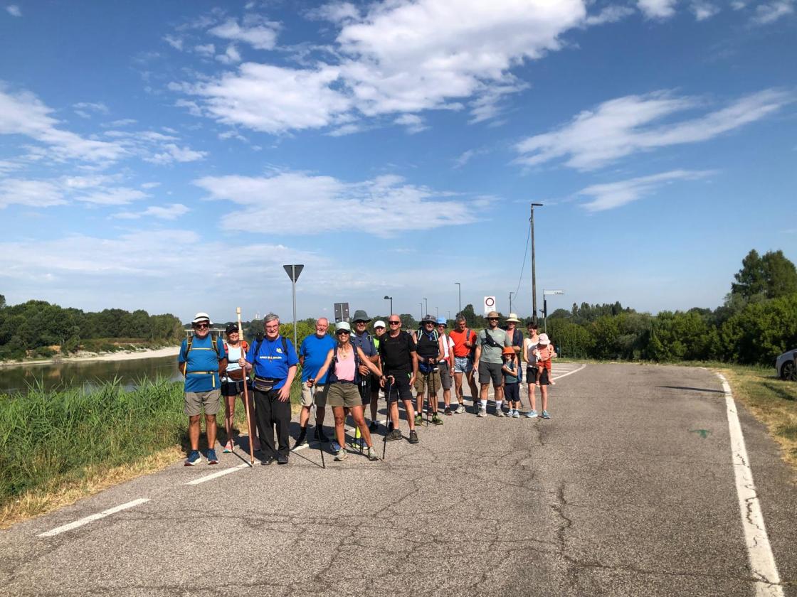 Gambe in spalla, è proprio il caso di dirlo, zaino sulla schiena e un bastone che punta dritto a Roma: è cominciato nel segno della speranza il cammino del gruppo “I Pellegrini - Verona”, l’associazione che, partendo dal capoluogo scaligero martedì 22, oggi è transitata anche per il Polesine, precisamente nella tratta fra Bergantino, Ficarolo e Occhiobello, per poi riprendere il percorso verso l’Urbe domani mattina. Segni e passaggi: nell’anno del Giubileo ordinario, il gruppo di pellegrini, non estraneo a questo tipo di esperienze, ha deciso di mettersi in viaggio sulle antiche rotte di chi ci ha preceduto. Indirizzo comune, la città eterna per varcare la soglia della Porta Santa della basilica Vaticana e partecipare all’udienza papale di mercoledì 13 agosto, un giorno dopo l’arrivo previsto il 12. E si sa, il vero cambiamento inizia mettendosi in cammino, e per noi umani è qualcosa di estremamente fattivo; passare, toccare, camminare lungo i sentieri polverosi, arginali in questo caso, come quelli lungo il Po.