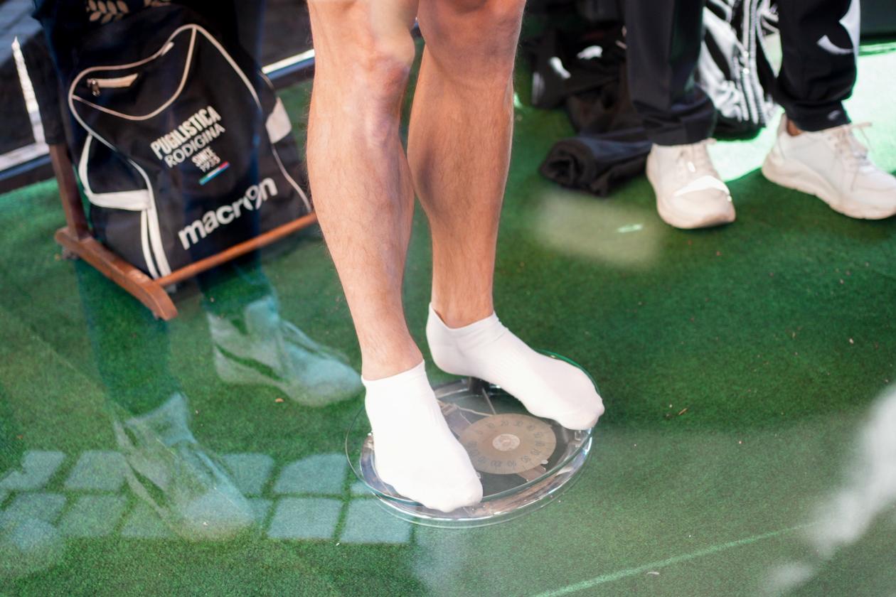Non si può non perdere nella vita, l’importane è però almeno rialzarsi e sferrare un colpo in più. Dalle indimenticabili scene di quelle 15 riprese ininterrotte sul ring di Stallone, il sogno di Cristiano Castellacci, della società, è uno solo: “Ci piacerebbe portare a casa il titolo Rbo Mediterraneo ma sappiamo che non sarà facile. Penso che non ci fosse miglior modo per festeggiare i 90 anni della Pugilistica. Direttamente sul ring con atleti dal calibro veramente rilevante e importante”. E di calibri, e pesi, se ne è parlato questa mattina per la consueta, quanto tradizionale, pesatura dei pugili: ad attenderli nella vetrina dell’edicola di Sartoria Meccanica, Alex Tomasello, commissario di gara. “E’ un momento più importante per un pugile perché determina la sua categoria di peso per la quale andrà a combattere l’indomani quando ci sarà l’incontro, chiamato “ordinaria mista” che li disporrà nel ring per iniziare il match”.