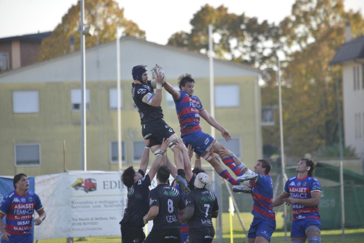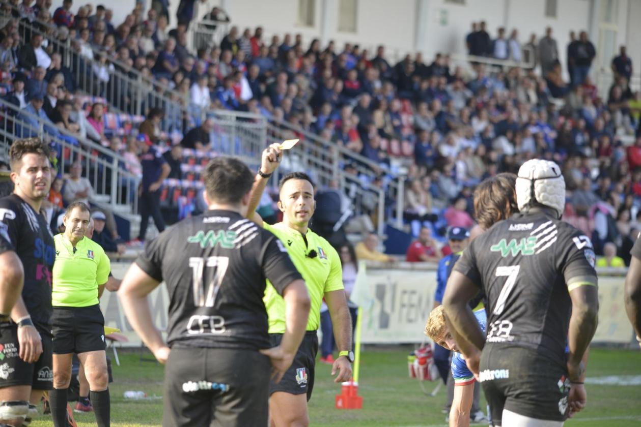 A tempo ormai scaduto penalty-touche vinta dalla Femi Cz Rovigo. ovale che viene aperto al largo ma l’ultimo passaggio viene volontariamente intercettato da Pasini. All’arbitro non resta che concedere la seconda meta tecnica e far chiudere il primo tempo 35-10 e dare giallo all’ala piacentina.