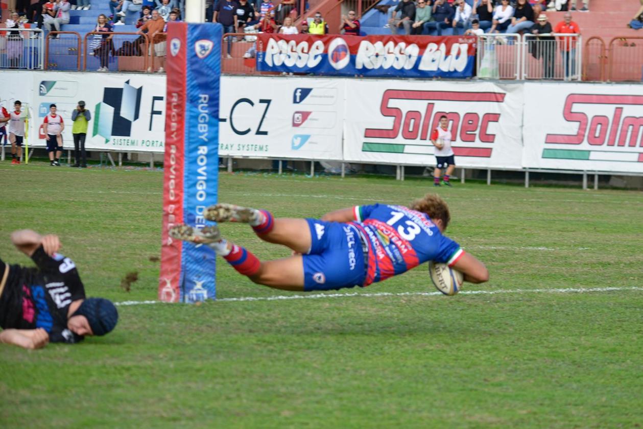 Primo tempo che nei primi 30’ vede Piacenza padrone del gioco e del territorio. Ma la Femi Cz Rovigo è più squadra e sfrutta le occasioni per andare in meta. Negli ultimi 10’ solo Rovigo e arrivano le due mete tecniche che di fatto chiudono la partita. Secondo tempo dove non c’è partita, con la Femi Cz Rovigo che domina in lungo ed in largo. Come da tradizione alla prima di campionato interna il capitano della Rugby Rovigo, nell’occasione Facundo Ferrario, ha portato un mazzo di fiori sullo stele dedicato a Mario Maci Bettaglini. Partenza in salita per la Femi Cz Rovigo che ricevuto l’ovale lo fa arrivare a Thomson che prova un lancio lungo che viene intercettato da Pasini che s’invola in meta. Matenga per lo 0-7 dopo nemmeno un minuto di gioco.