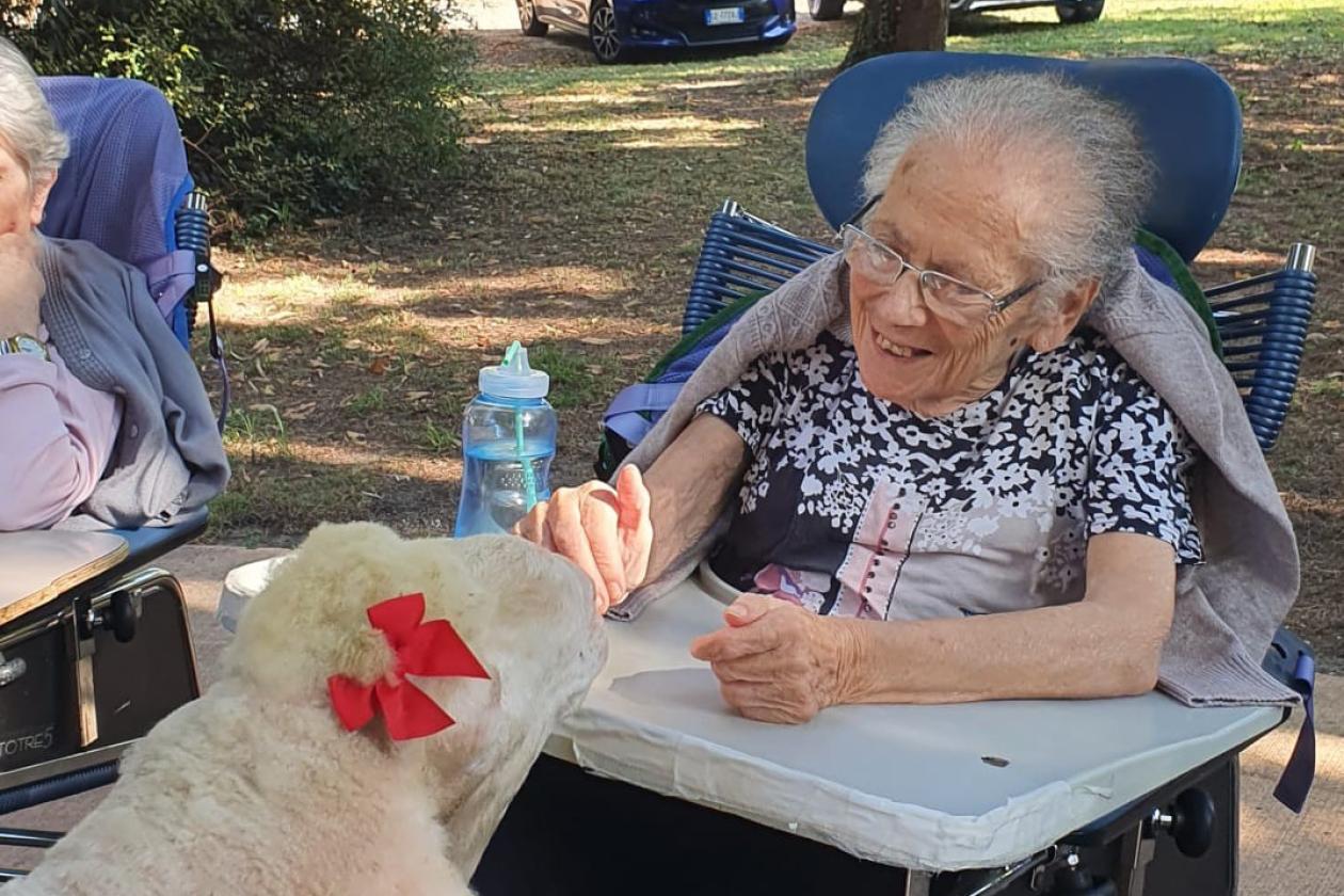 "L'evento di animazione con la pecora Giulia, promosso dal servizio socio-educativo, ha entusiasmato non solo gli ospiti ma anche i famigliari, piacevolmente colpiti dal riscontro avuto sui propri cari".
