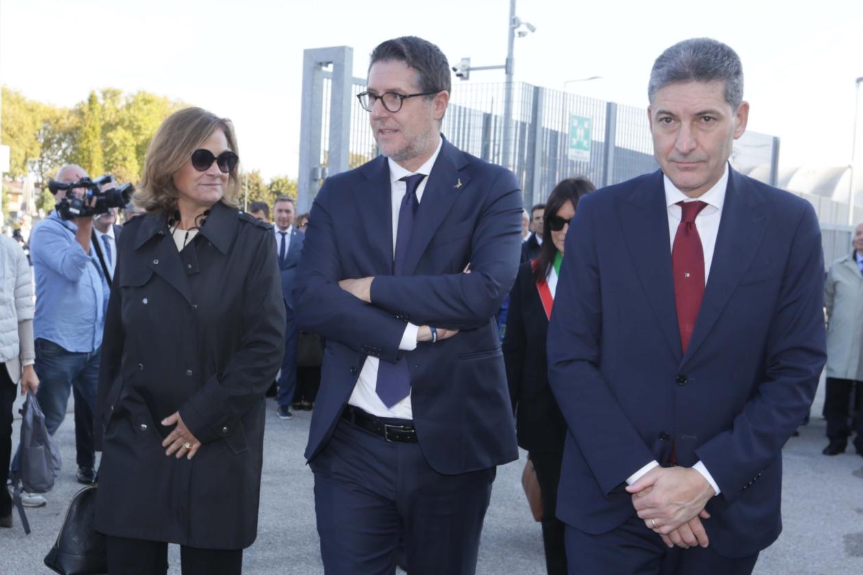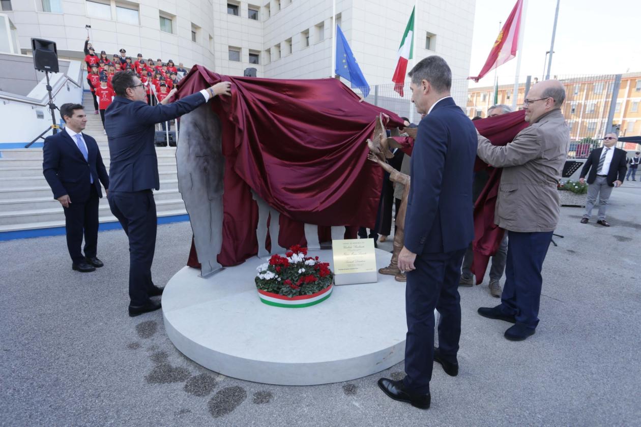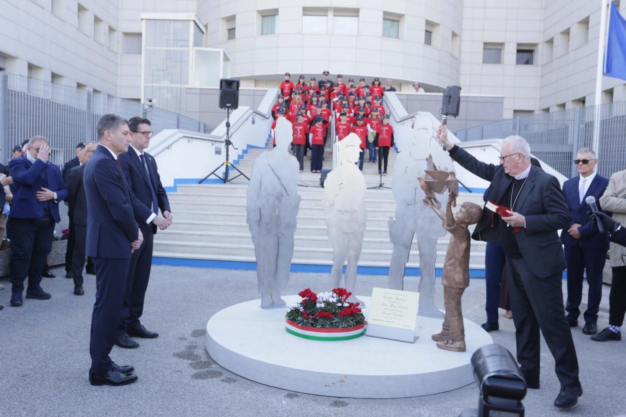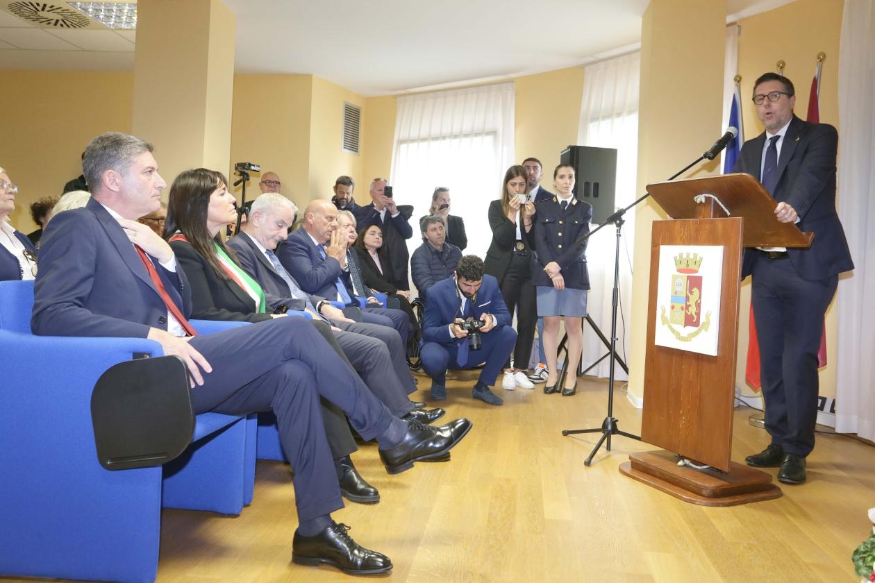 Sono tre colombe dorate quelle che ora volano verso il cielo, dalla scalinata della Questura. Commossa, sentita ma soprattutto partecipata, la cerimonia che ieri mattina ha svelato la nuova scultura, proprio all’ingresso dell’edifico, dedicata ai tre agenti della polizia di Stato caduti in servizio. Tre vite spezzate troppo presto: quella di Umberto Barbierato, 23enne arrestato il 2 maggio 1945 dai partigiani jugoslavi, primo polesano infoibato e mai più ritrovato, di Ilaria Maria Leandri, della polizia stradale di Rovigo deceduta nel 1997 dopo essere stata travolta da un veicolo industriale mentre eseguiva i rilievi di un incidente tra le carreggiate della A13, e ancora, Samuele Donatoni, agente del Nocs travolto da una pallottola involontaria durante il tentativo di liberare l’imprenditore Giuseppe Soffiantini dalla banda di sequestratori sardi, 28 anni fa come oggi. Caso, seppur in prescrizione, che ancora è ferita aperta per la famiglia, presente alla commemorazione. Tante le autorità civili, militari e religiose presenti, tra queste il prefetto Franca Tancredi, il procuratore di Rovigo, Manuela Fasolato, il sindaco Valeria Cittadin, il presidente della provincia Enrico Ferrarese, gli onorevoli Piergiorgio Cortelazzo, Nadia Romeo e Bartolomeo Amidei, gli assessori regionali Valeria Mantovan, Cristiano Corazzari, la consigliera Laura Cestari e il direttore generale dell’Ulss 5, Pietro Girardi, insieme ai comandanti delle forze dell’ordine. A suggellare la mattinata, la doppia intitolazione di due sale del plesso, quella riunione al “martire delle foibe”, Barbierato, e quelle conferenze a Donatoni. Con l’arrivo del sottosegretario all’interno, Nicola Molteni e Vittorio Pisani, capo della polizia, gli onori alla bandiera e ai caduti con la deposizione della corona d’alloro. Il corteo ha poi svelato il gruppo scultoreo realizzata dall’artista veronese Alessandro Mutto. Sono tre le sagome in acciaio che ritraggono i tre agenti, materiale, ha spiegato l’autore: “Che rappresenta l’etereo, permettendo di farci riflettere il cielo e la luce, come le anime dei tre agenti. In bonzo, invece, metallo più terreno, un bambino che accompagna in volo le colombe rappresentanti la vita spesa per l’altro e gli altri. Gli “Eroi di Rovigo”, come è stata intitolata, è stata poi benedetta dal vescovo della diocesi di Adria-Rovigo, Pierantonio Pavanello e sulle note dell’inno di Mameli, cantato dagli alunni delle elementari Donatoni del capoluogo, il momento è proseguito all’interno della questura.