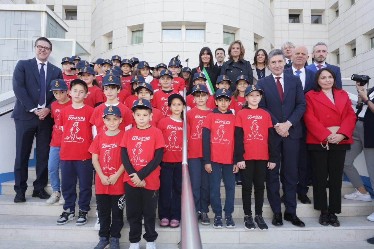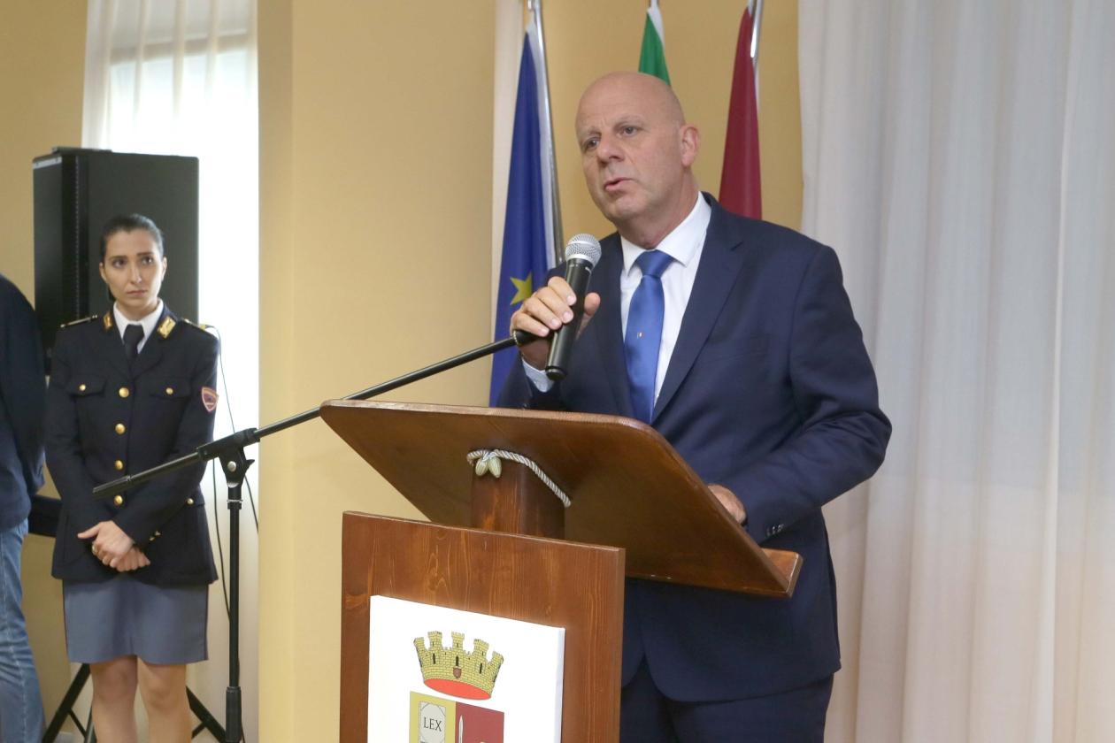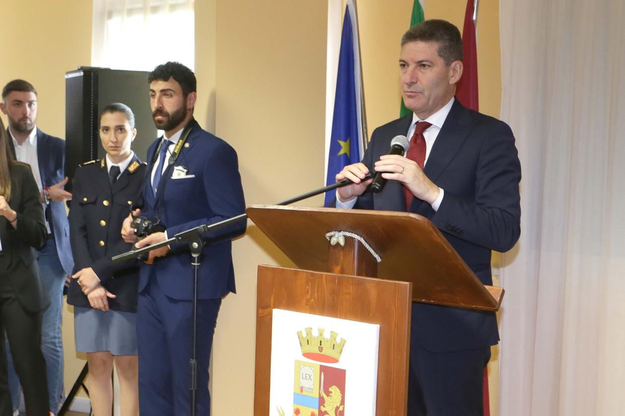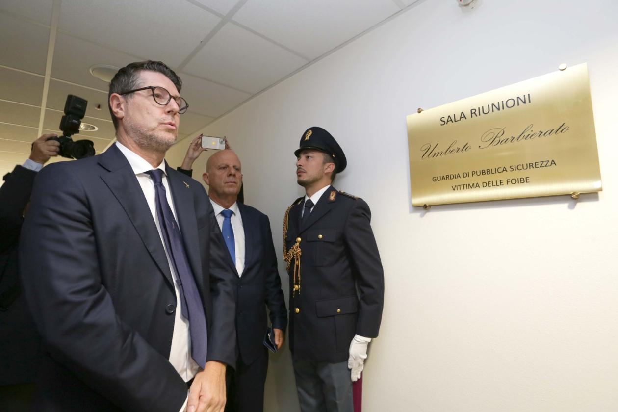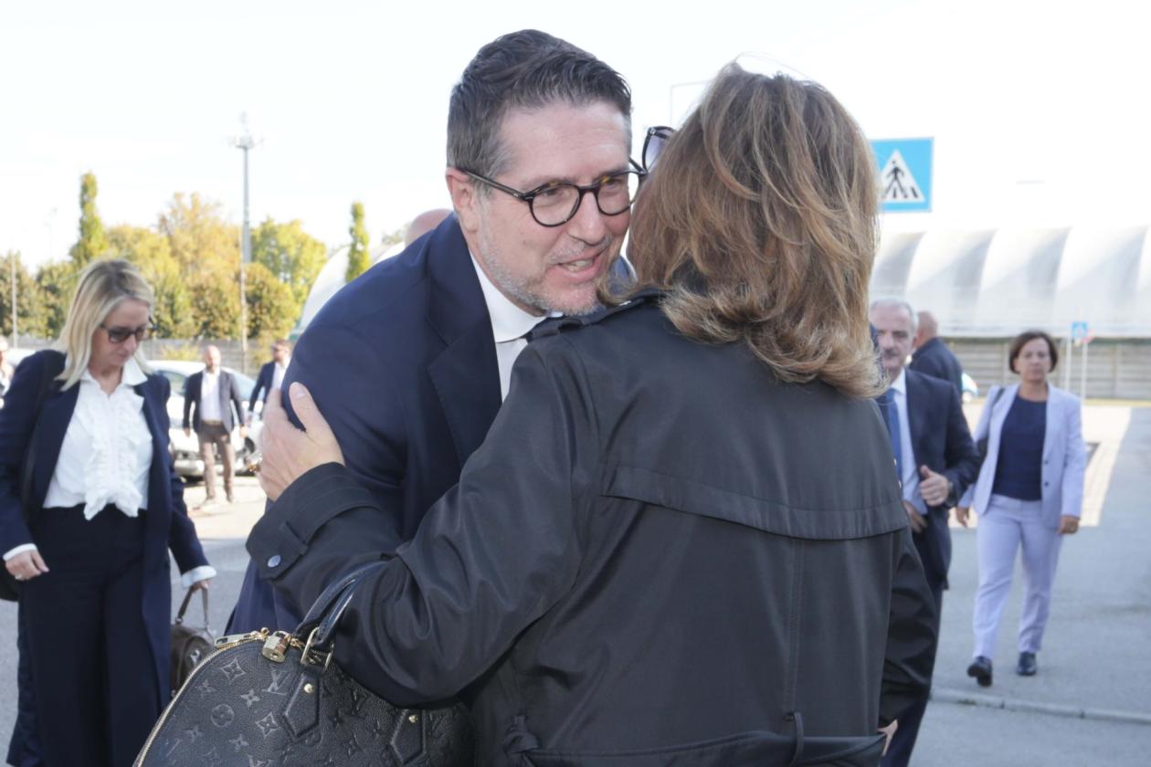 Sono tre colombe dorate quelle che ora volano verso il cielo, dalla scalinata della Questura. Commossa, sentita ma soprattutto partecipata, la cerimonia che ieri mattina ha svelato la nuova scultura, proprio all’ingresso dell’edifico, dedicata ai tre agenti della polizia di Stato caduti in servizio. Tre vite spezzate troppo presto: quella di Umberto Barbierato, 23enne arrestato il 2 maggio 1945 dai partigiani jugoslavi, primo polesano infoibato e mai più ritrovato, di Ilaria Maria Leandri, della polizia stradale di Rovigo deceduta nel 1997 dopo essere stata travolta da un veicolo industriale mentre eseguiva i rilievi di un incidente tra le carreggiate della A13, e ancora, Samuele Donatoni, agente del Nocs travolto da una pallottola involontaria durante il tentativo di liberare l’imprenditore Giuseppe Soffiantini dalla banda di sequestratori sardi, 28 anni fa come oggi. Caso, seppur in prescrizione, che ancora è ferita aperta per la famiglia, presente alla commemorazione. Tante le autorità civili, militari e religiose presenti, tra queste il prefetto Franca Tancredi, il procuratore di Rovigo, Manuela Fasolato, il sindaco Valeria Cittadin, il presidente della provincia Enrico Ferrarese, gli onorevoli Piergiorgio Cortelazzo, Nadia Romeo e Bartolomeo Amidei, gli assessori regionali Valeria Mantovan, Cristiano Corazzari, la consigliera Laura Cestari e il direttore generale dell’Ulss 5, Pietro Girardi, insieme ai comandanti delle forze dell’ordine. A suggellare la mattinata, la doppia intitolazione di due sale del plesso, quella riunione al “martire delle foibe”, Barbierato, e quelle conferenze a Donatoni. Con l’arrivo del sottosegretario all’interno, Nicola Molteni e Vittorio Pisani, capo della polizia, gli onori alla bandiera e ai caduti con la deposizione della corona d’alloro. Il corteo ha poi svelato il gruppo scultoreo realizzata dall’artista veronese Alessandro Mutto. Sono tre le sagome in acciaio che ritraggono i tre agenti, materiale, ha spiegato l’autore: “Che rappresenta l’etereo, permettendo di farci riflettere il cielo e la luce, come le anime dei tre agenti. In bonzo, invece, metallo più terreno, un bambino che accompagna in volo le colombe rappresentanti la vita spesa per l’altro e gli altri. Gli “Eroi di Rovigo”, come è stata intitolata, è stata poi benedetta dal vescovo della diocesi di Adria-Rovigo, Pierantonio Pavanello e sulle note dell’inno di Mameli, cantato dagli alunni delle elementari Donatoni del capoluogo, il momento è proseguito all’interno della questura.