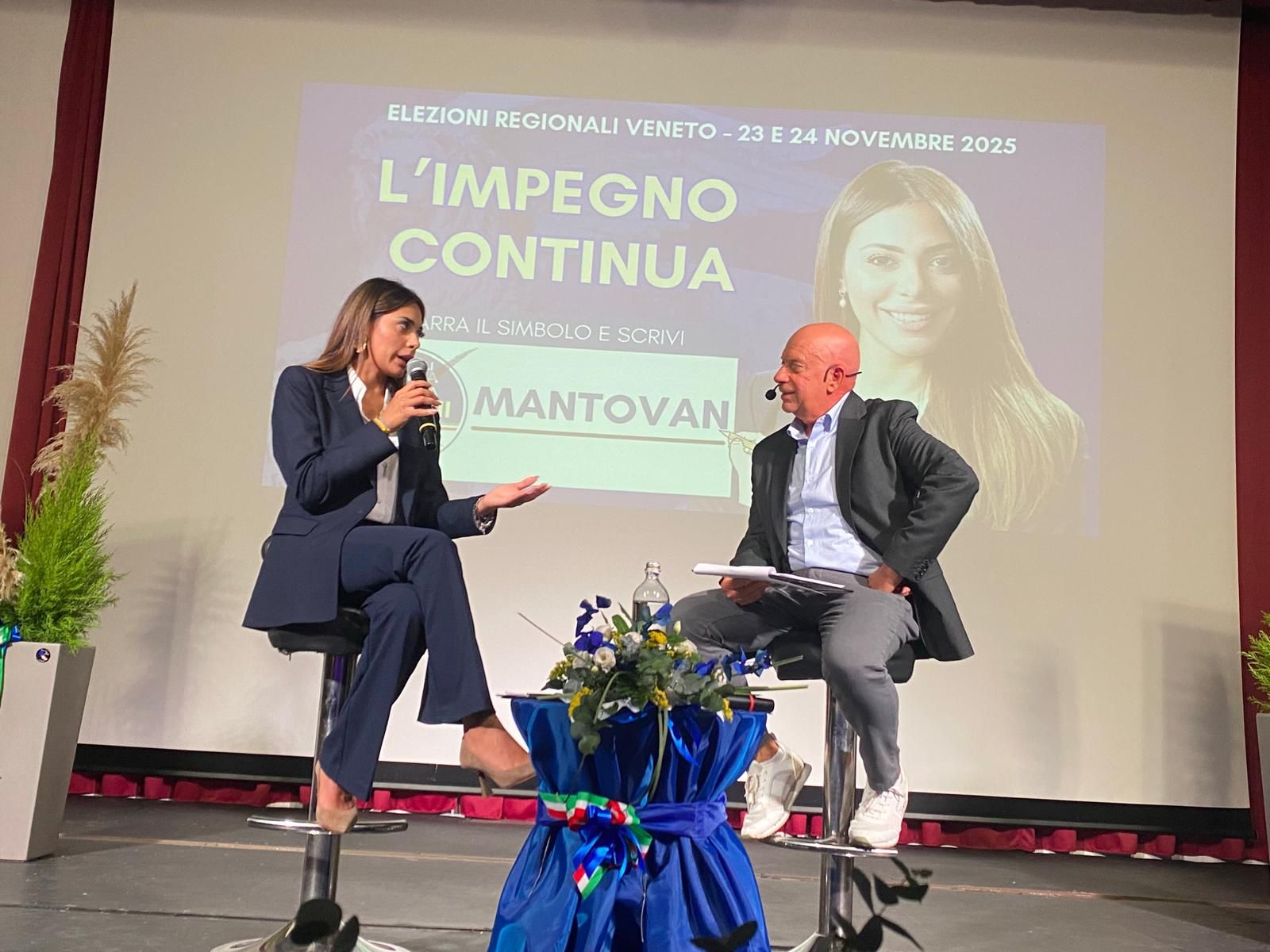 Nel suo intervento, Mantovan ha ripercorso le tappe di un percorso politico intenso e veloce, che l’ha portata, a soli trentaquattro anni, a sedere nella Giunta regionale del Veneto con deleghe a Istruzione, Lavoro, Formazione e Pari Opportunità, succedendo a Elena Donazzan, oggi europarlamentare.