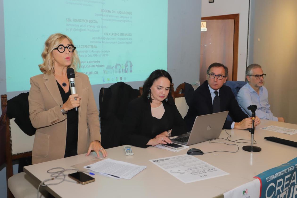 Prima di dare il via ai lavori, è stata Romeo, con la voce che si è più volte incrinata, ad esordire: “Un anno fa ci ha lasciato Nello Chendi. Per lui ogni momento di confronto era un atto dovuto. In ogni momento ci ha accompagnato con il sorriso, con la sua proposta e con la sua grande energia che è quello che manca a tutti noi”. Poi ha consegnato un mazzo di garofani rossi ad Ornella, moglie di Chendi, presente all’evento. Introduzione affidata a Crivellari: “Tema della campagna elettorale del Veneto è la glaciazione demografica. Buona parte del futuro del territorio si gioca su fare delle politiche di ripopolamento che significa mantenere i servizi, in modo che i cittadini non siano costretti ad abbandonare il territorio”.